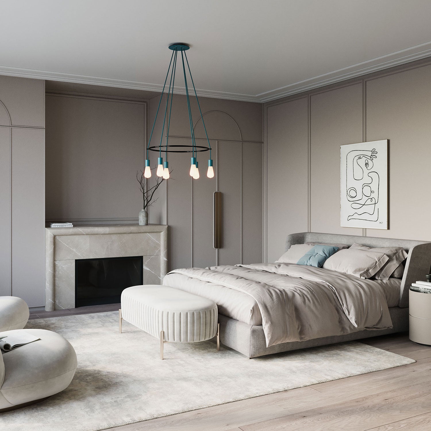 Luster Cage so 6 závesmi Edison ST64 - Petrolejová