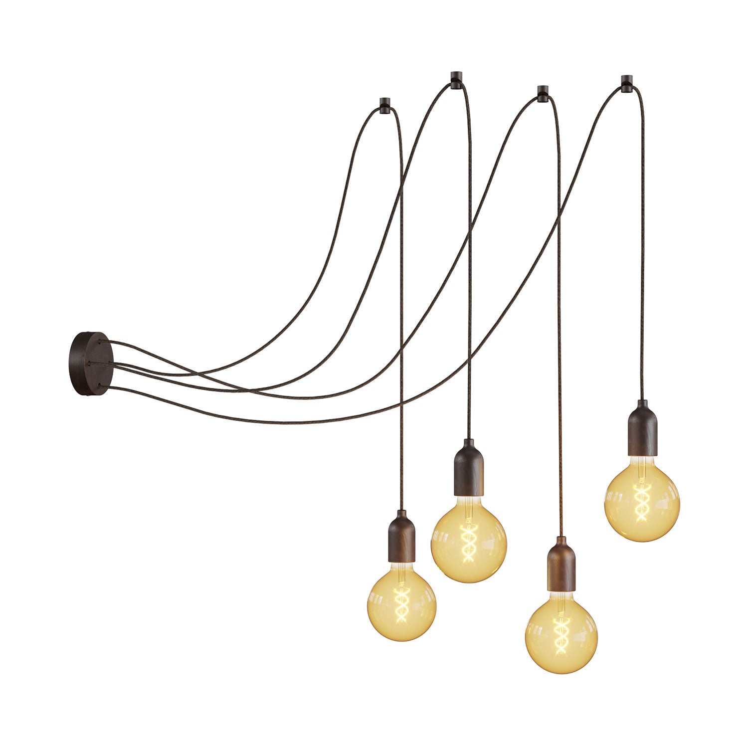 Spider - Závesná lampa s viacerými závesmi, 4 závesy s drevenými detailmi - Efekt Wengé