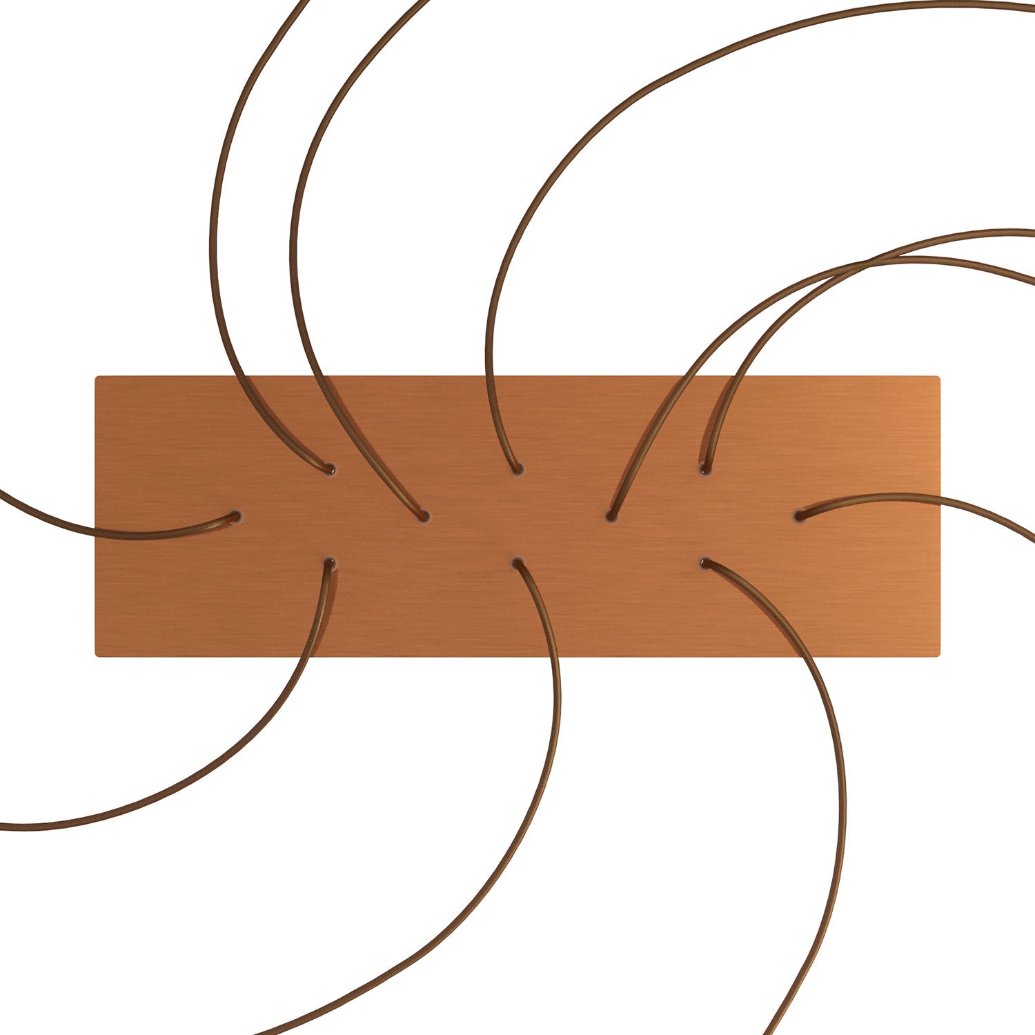 Stropná rozeta XXL Rose-One obdĺžniková so 7 otvormi a 6 bočnými otvormi, rozmery 675 x 225 mm - Dibond Saténová meď