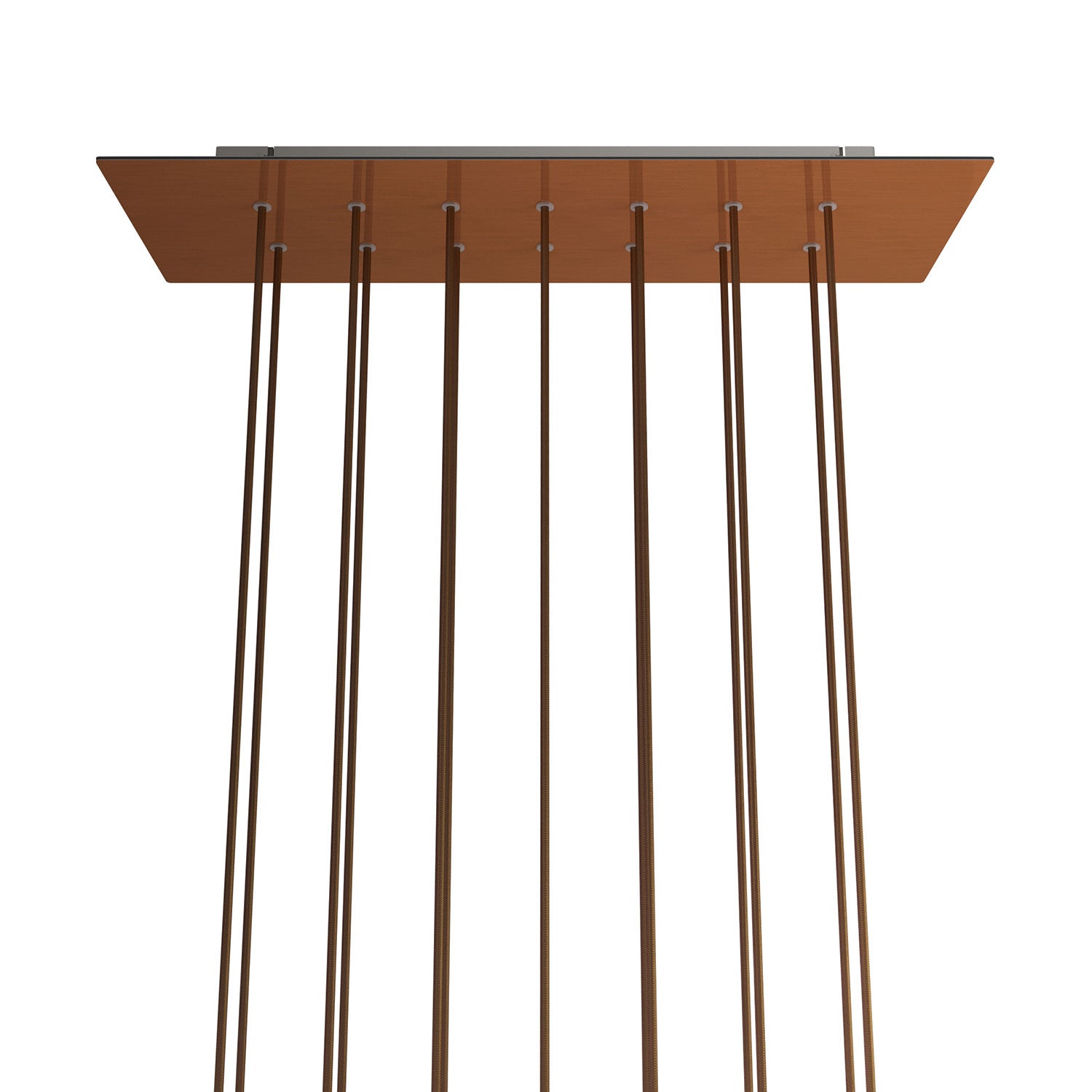 Stropná rozeta XXL Rose-One obdĺžniková s 11 otvormi a 6 bočnými otvormi, rozmery 675 x 225 mm - Dibond Saténová meď