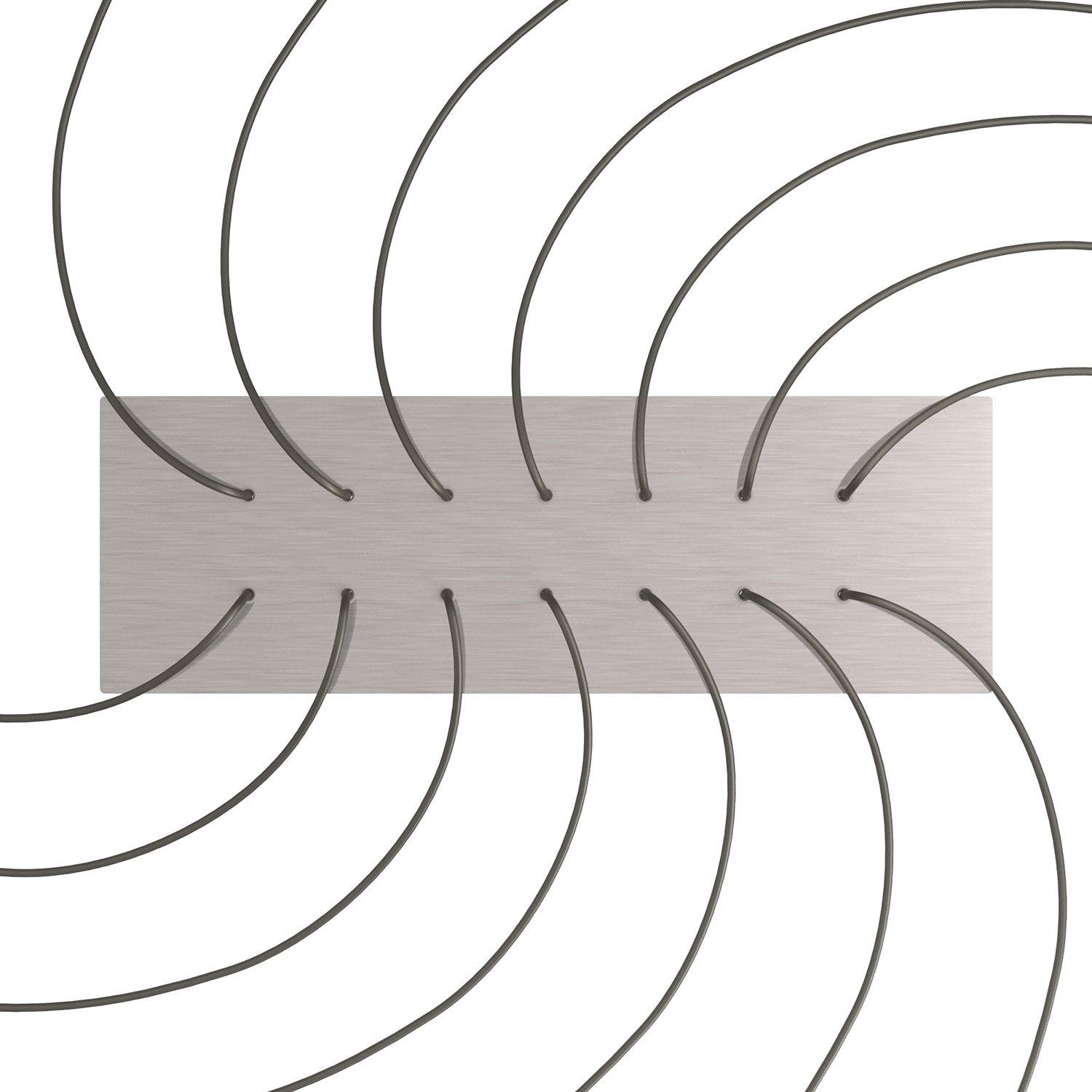 Stropná rozeta XXL Rose-One obdĺžniková so 14 otvormi a 6 bočnými otvormi, rozmery 675 x 225 mm – Dibond Saténová oceľ