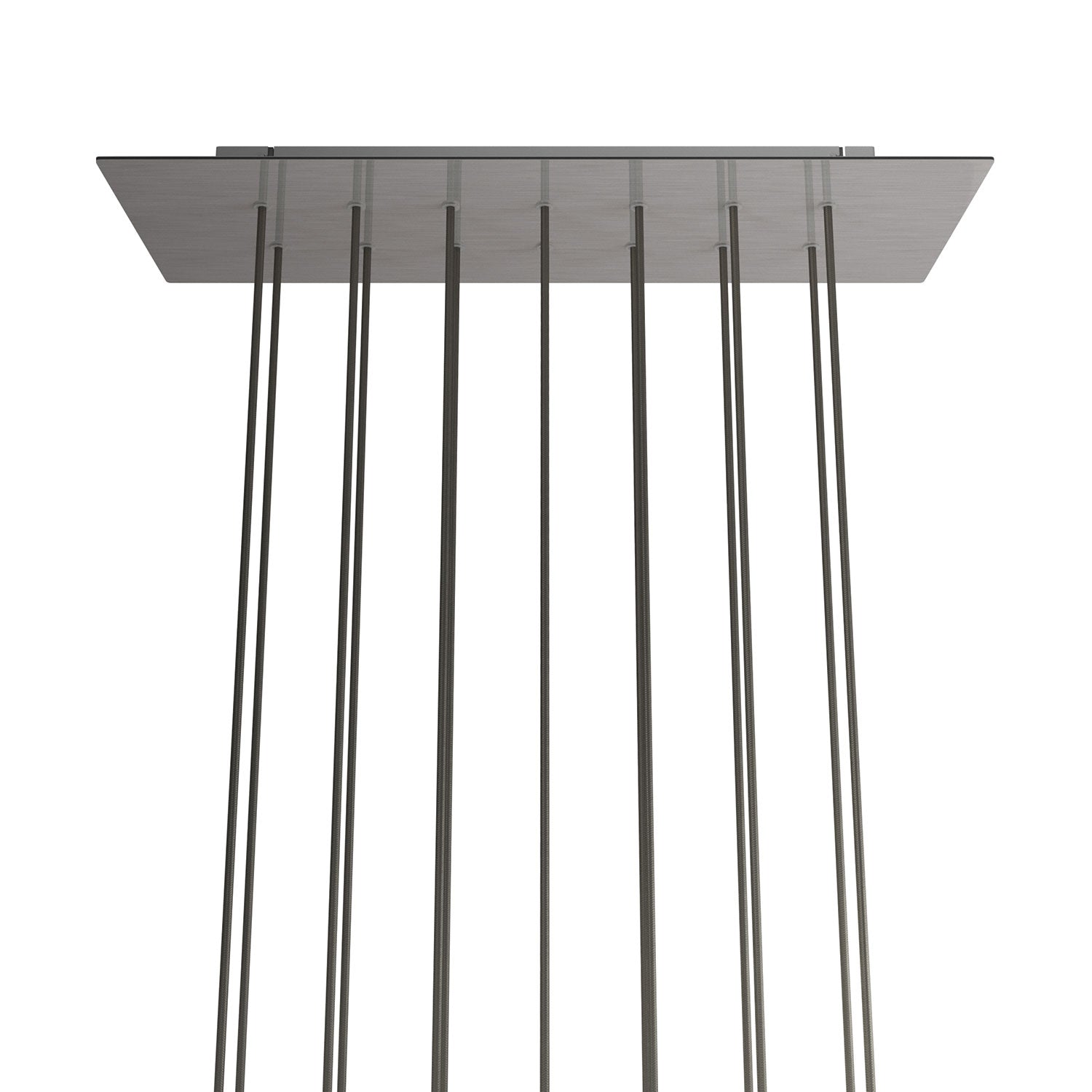 Stropná rozeta XXL Rose-One obdĺžniková s 10 otvormi a 6 bočnými otvormi, rozmery 675 x 225 mm - Dibond Saténová oceľ
