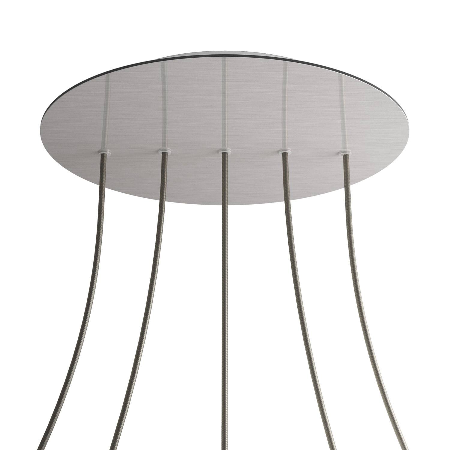 Stropná rozeta XXL Rose-One okrúhla, priemer 400 mm s 5 otvormi v rade a 4 bočnými otvormi - Dibond brúsená oceľ