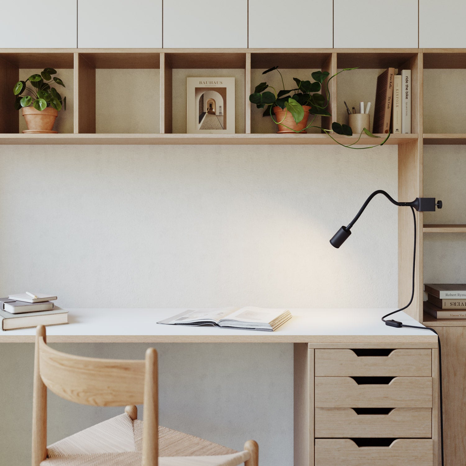 Kompaktná a výrazná: ohybná lampa v čiernej farbe spája minimalistickú eleganciu a okamžitú funkčnosť. Bodové svietidlo GU1d0 poskytuje jasné a zamerané osvetlenie, ideálne na čítanie knihy alebo osvetlenie projektu. Flexibilné rameno potiahnuté textíliou sa dá presne ohýbať a nastavovať podľa potreby. Kovová klipsa umožňuje bezpečné upevnenie na police, stoly alebo regály, zatiaľ čo magnetická základňa MAG-Y udrží lampu stabilnú a zároveň umožňuje jej rýchle premiestnenie.