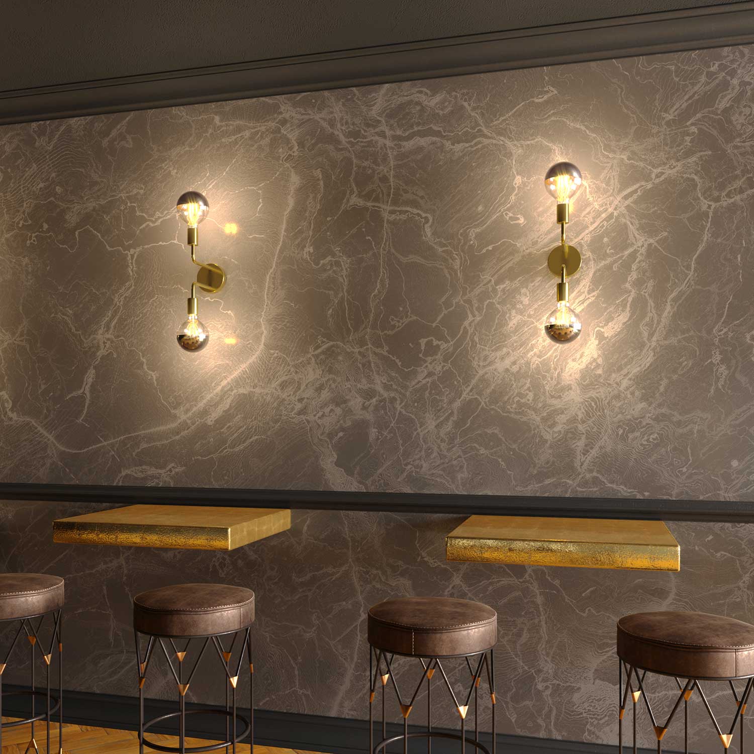 Táto nástenná lampa z mosadzného kovu s dvojitým zahnutím sa dá umiestniť vertikálne alebo horizontálne, čo umožňuje modelovať svetlo podľa tvojich estetických a funkčných potrieb.