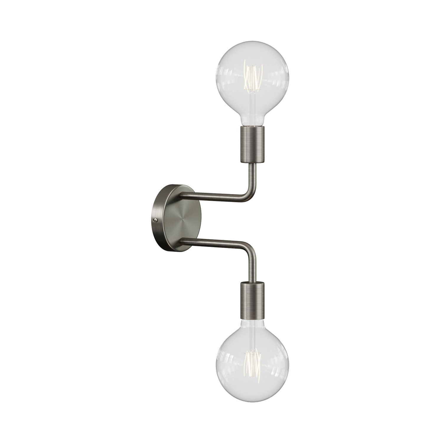 Táto nástenná lampa z matného titánového kovu s dvojitým zakriveným ramenom môže byť nastavená vertikálne alebo horizontálne, čo umožňuje prispôsobiť svetelný efekt a zladiť ho s tvojím interiérom.