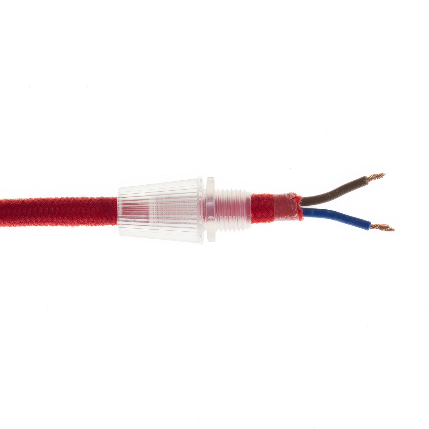 Káblová svorka v priehľadnom prevedení na praktické a bezpečné uchytenie elektrických káblov z textilu k objímkam a stropným rozetám akéhokoľvek typu a materiálu.