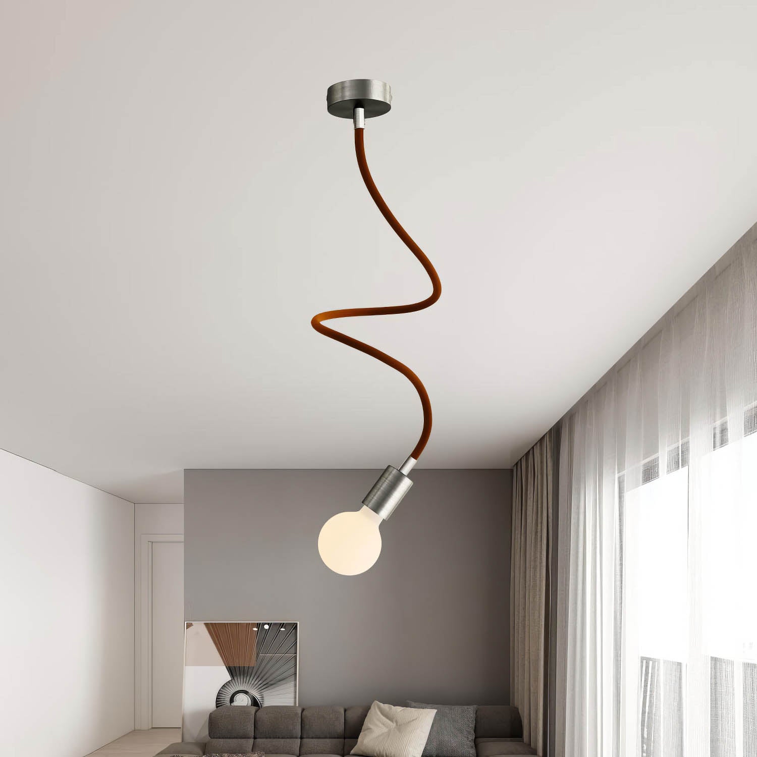 Ohnuteľná trubica FLEX potiahnutá látkou, v hnedom odtieni, je ideálna na vytváranie jednoduchých aj viacnásobných závesných lámp inšpirovaných tými najfantastickejšími nápadmi – vašimi.