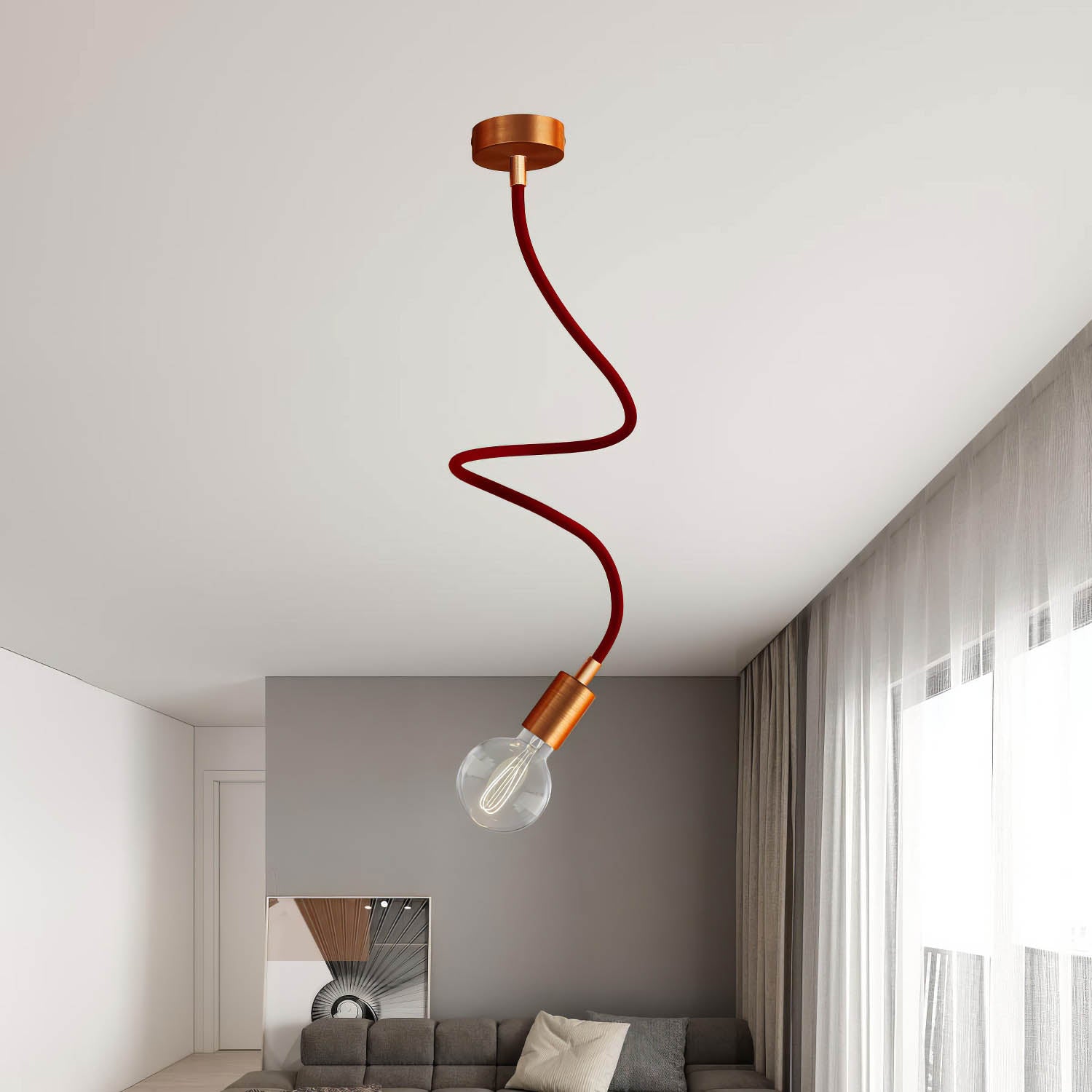 A žili flexibilne a šťastne. Ohnuteľná trubica FLEX potiahnutá textíliou v bordovej farbe je ideálna na vytváranie jednoduchých aj viacnásobných závesných lámp inšpirovaných tými najkreatívnejšími nápadmi – vašimi. Dajte priestor svojej kreativite a vytvorte si vlastný osvetľovací systém.