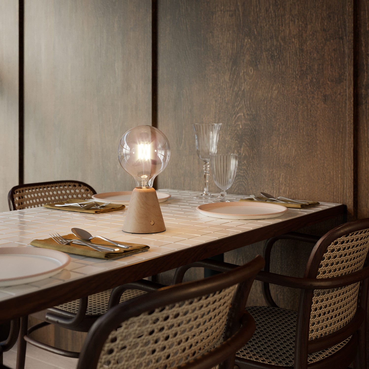 So svojou základňou z prírodného nelakovaného dreva je Cabless01 prenosná lampa, ktorá spája funkčnosť a prírodný charakter. Každá základňa vyzdvihuje krásu jelše, vďaka čomu je každý kus jedinečný. Nabíjateľná a bezdrôtová, môžete ju presúvať kamkoľvek bez obmedzení. V tejto verzii je kombinovaná s priehľadnou žiarovkou G125, ktorá podčiarkuje jej elegantnú jednoduchosť.