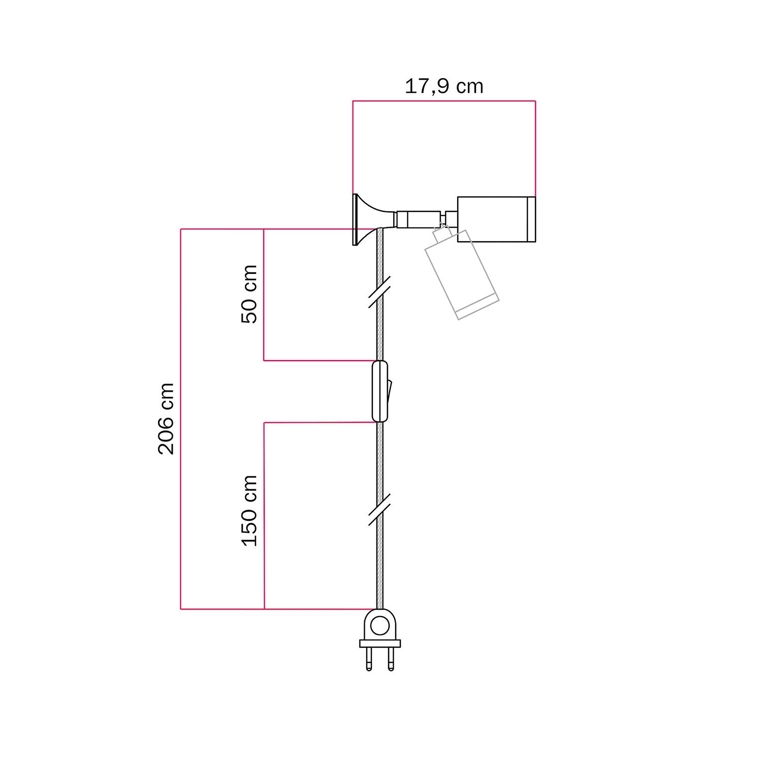 Konštrukcia z matného bieleho kovu spája vizuálnu ľahkosť s odolnosťou a hodí sa k minimalistickému a modernému zariadeniu. Kĺb, ktorý je možné nakloniť až do 90° a otočiť do 315°, umožňuje úplnú voľnosť pri smerovaní svetla. Textilný kábel, zástrčka a kovová podložka zabezpečujú rýchlu inštaláciu aj bez vyhradených zásuviek, zatiaľ čo magnetická základňa umožňuje jednoduché odpojenie a premiestnenie lampy.
