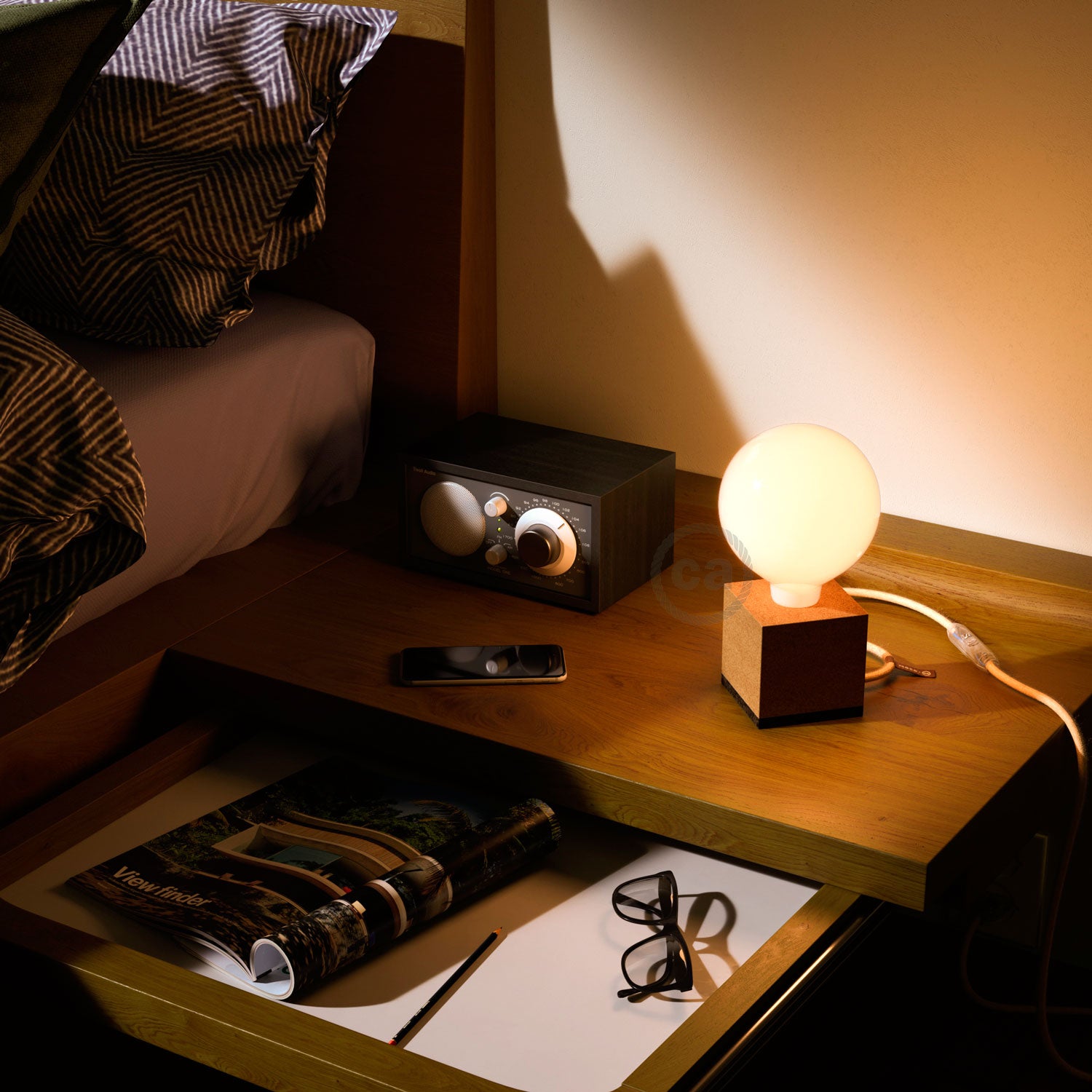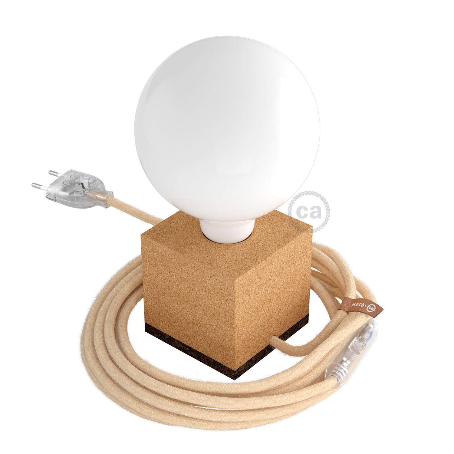 MoCo Posaluce Cubetto z prírodného korku, s textilným káblom, vypínačom a 2-pólovou zástrčkou