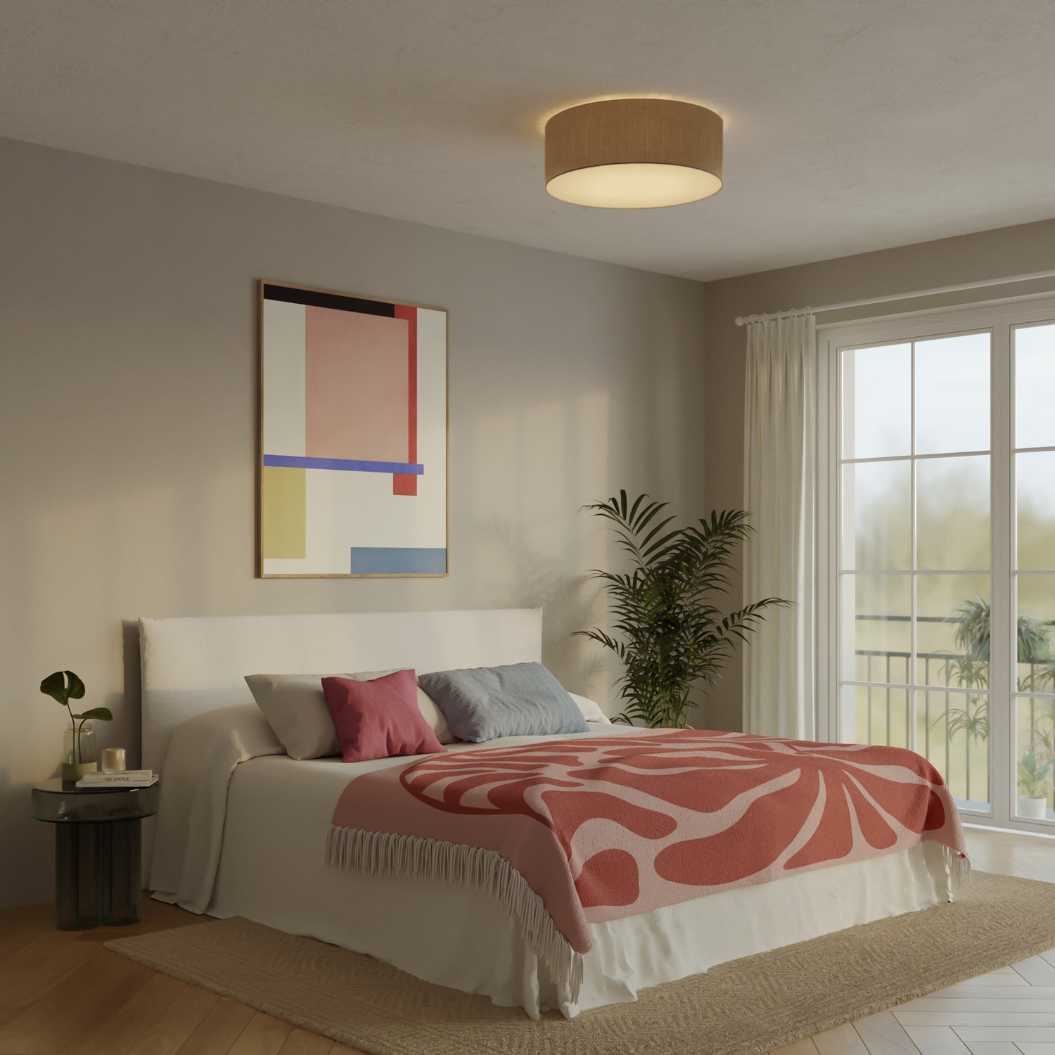 Navrhnuté na osvetlenie obývačiek, spální, pracovní a ďalších priestorov, ktoré vyžadujú rozptýlené svetlo, stropné svietidlo Large v hnedom odtieni Camelot je vyrobené z vysokokvalitných materiálov s dôrazom na detail. Kombinácia kvalitnej textílie a pevnej konštrukcie dodáva výrobku rafinovaný a moderný vzhľad, ktorý elegantne zvýrazní každý priestor.