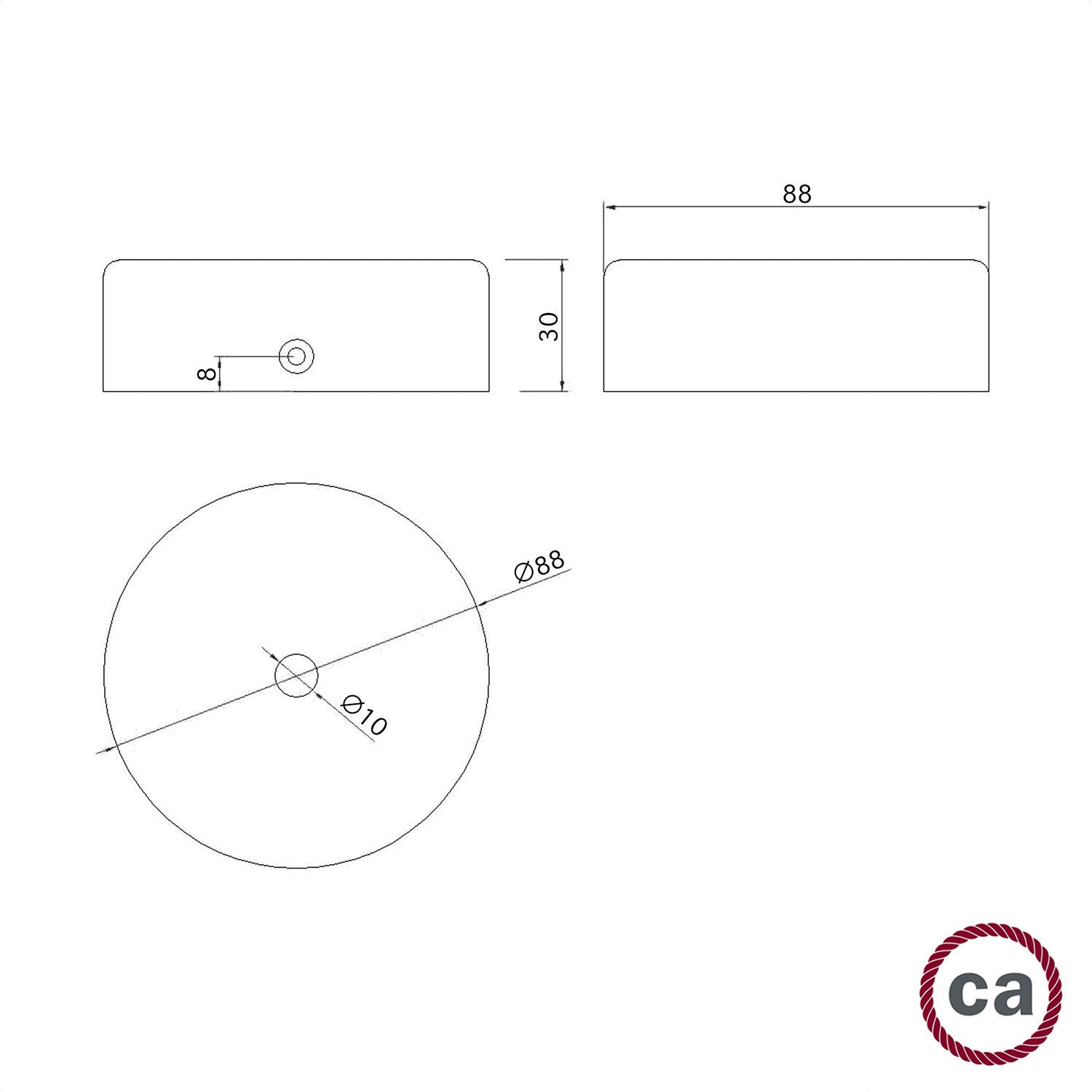 Sada mini stropnej rozety z dreva pre textilný kábel. Výška: 30mm Priemer: 88mm Priemer otvoru: 10mm Materiál: Drevo Systém uchytenia kábla. Vyrobené v Taliansku.