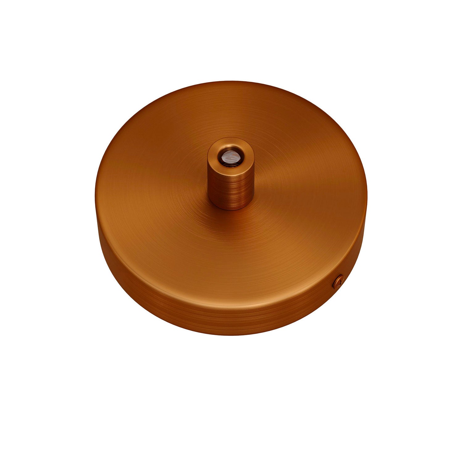 Mini stropná rozeta z kovu saténová meď s 1 centrálnym otvorom je určená na zostavenie stropnej alebo nástennej lampy s jedným svetelným bodom.