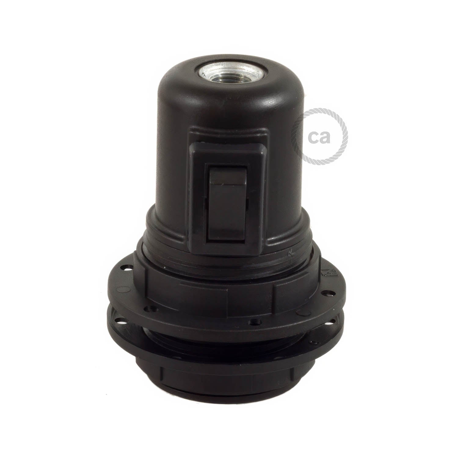 Sada objímka E27 z termoplastu s dvojitou maticou pre tienidlo a vypínač - Čierna