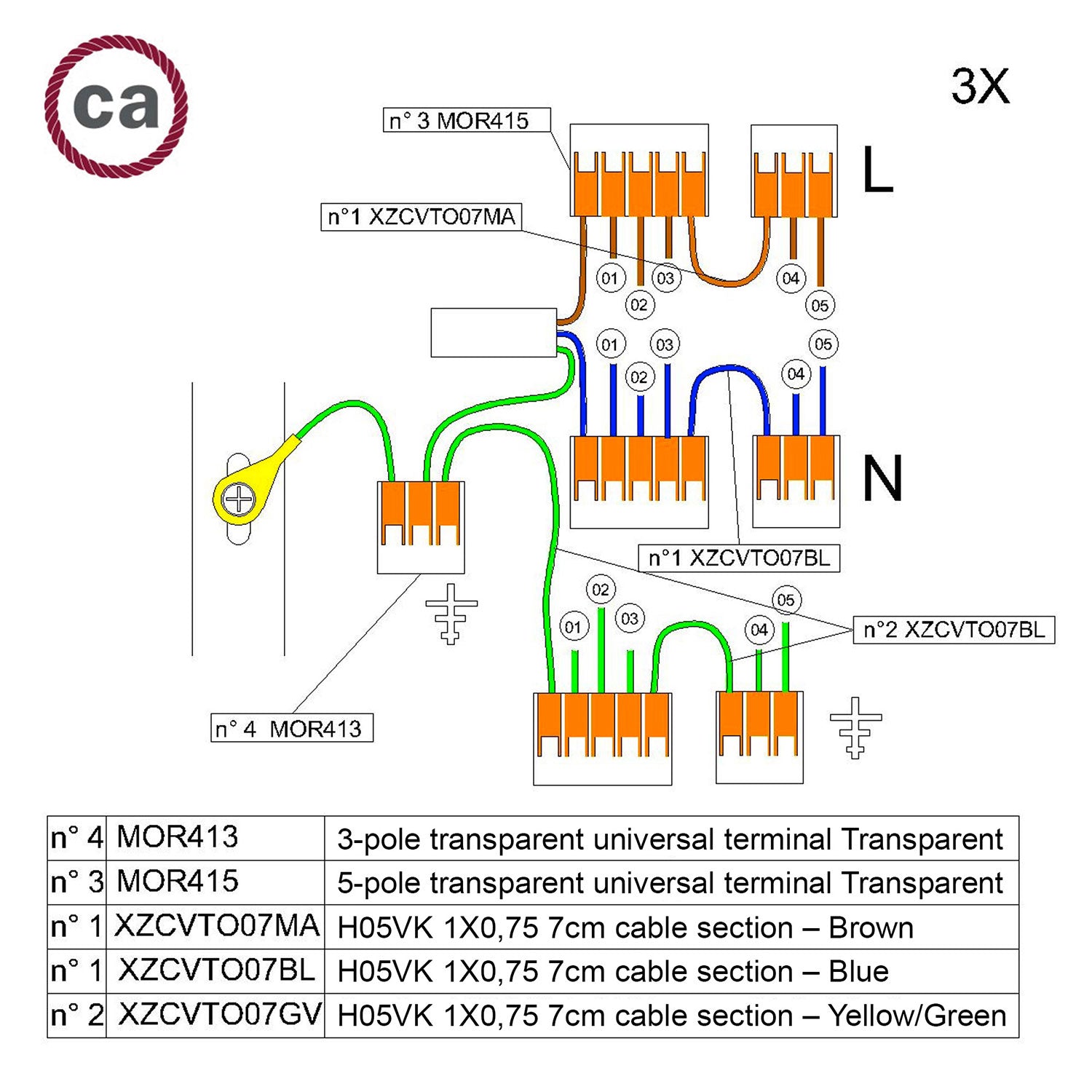 Sada WAGO na pripojenie kompatibilná s káblom 3x pre stropnú rozetu s 5 otvormi