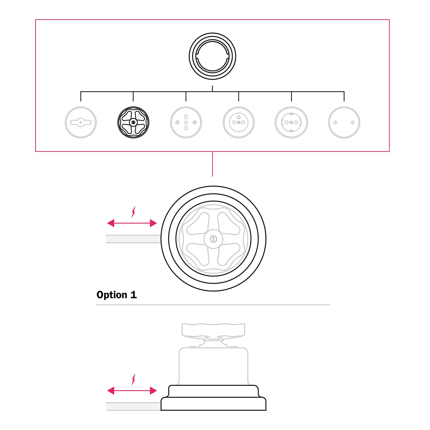 Vypínač/prepínač s otočnou rukoväťou, inšpirovaný dizajnom starých vodovodných kohútikov, umožňuje ovládať jedno svetlo z viacerých miest jednoducho a originálne. Dostupný je s rukoväťou vo farbe alebo v kontraste, čím dodáva priestoru elegantný a personalizovateľný nádych. Táto súprava z bieleho porcelánu je ideálna pre domácnosti, podniky a profesionálne priestory ako bary, reštaurácie či butiky, kde prispieva k vytvoreniu dobovej, striedmej a výnimočnej atmosféry.