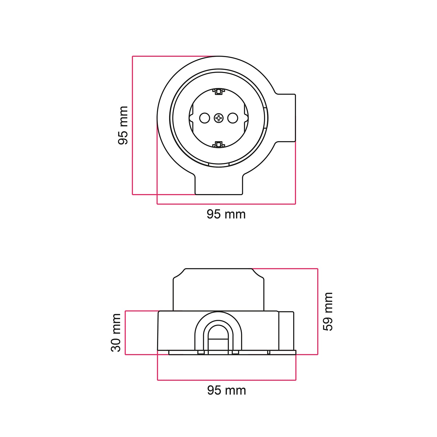 Zásuvka Schuko 2P+T 16A z porcelánu na stenu (taliansko-nemecký typ zásuvky):