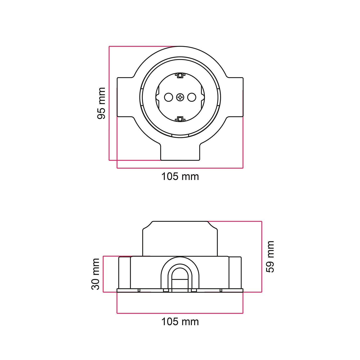 Zásuvka Schuko 2P+T 16A z porcelánu na stenu (taliansko-nemecký typ zásuvky):