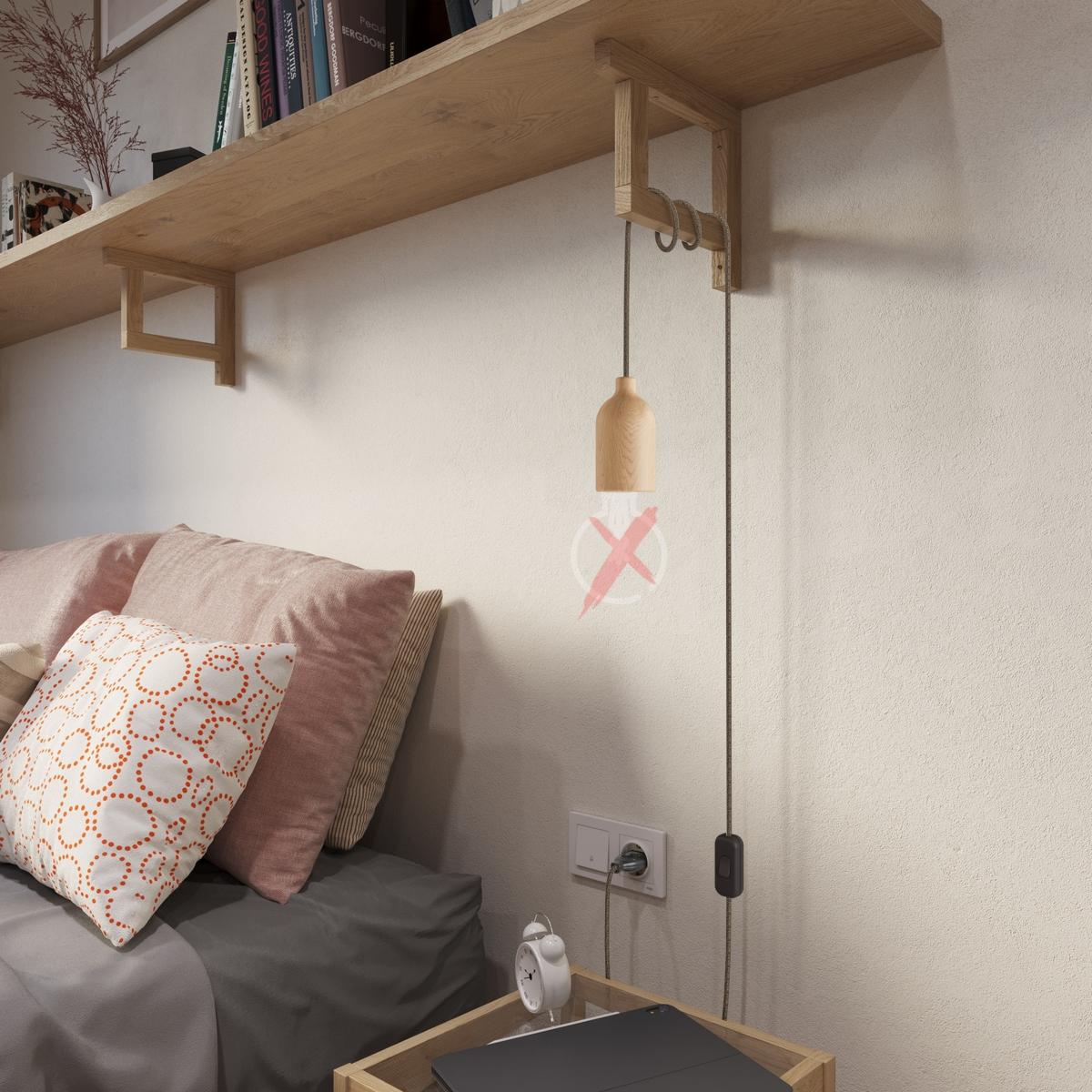 Douille : 1X [KBL1110] Kit douille E27 en bois avec serre-câble dissimulé - Finition: Neutral