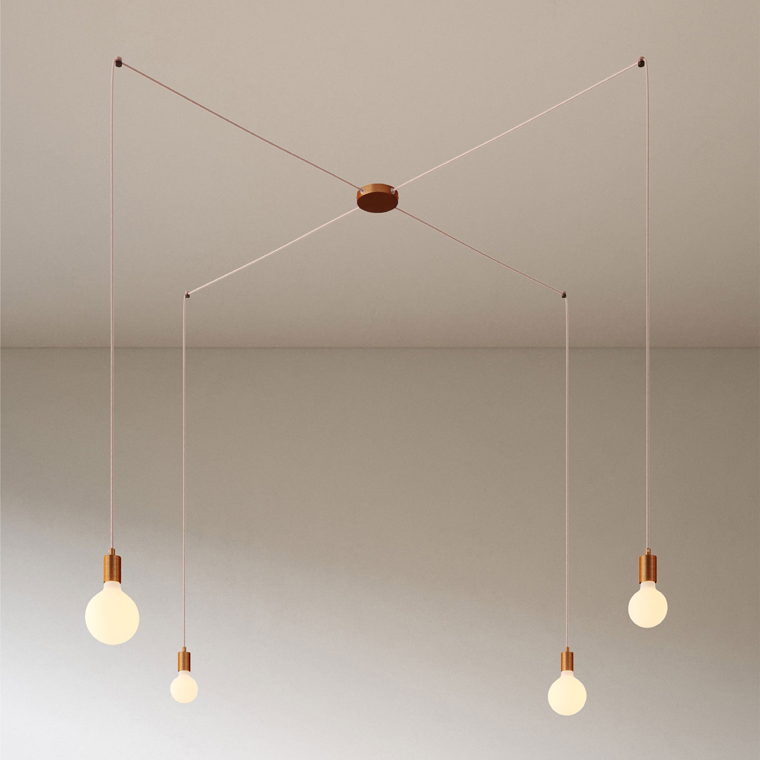 Spider – Viacnásobná závesná lampa so 4 závesmi s kovovými detailmi – Saténová meď