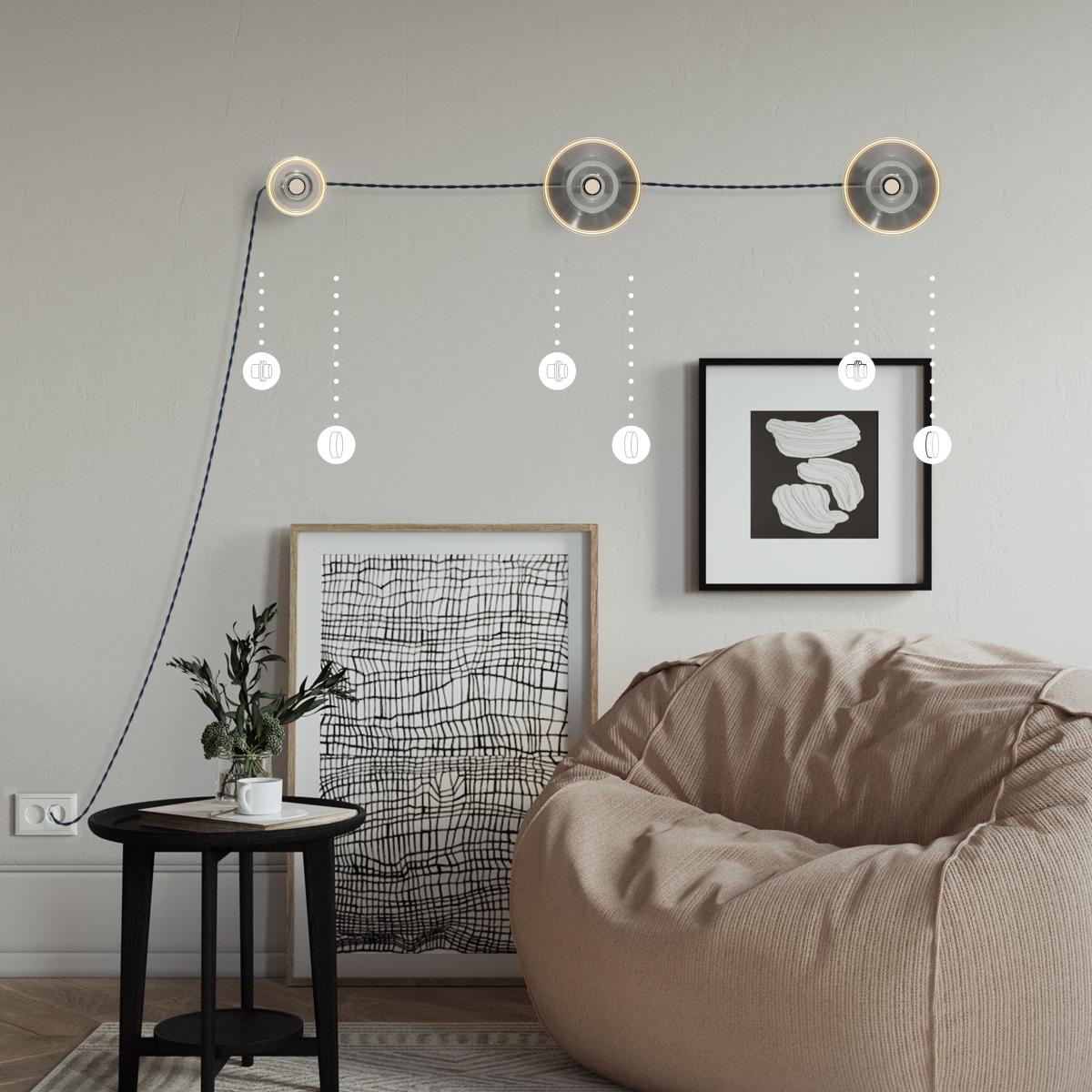 Cable A: from plug to 1st light point : 2.15mt. [XZ2TM20] Glossy Deep Blue Textile Cable - The Original Creative-Cables - TM20 braided 2x0.75mm / 3x0.75mm - N° of cores: 2x0.75