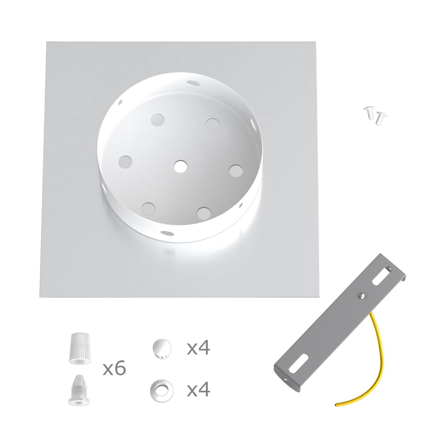 Sada stropná rozeta Rose-One, patentovaná spoločnosťou Creative-Cables, v antracitovej úprave dodáva vášmu priestoru výrazný a moderný nádych. Štvorec s rozmerom 200 mm a 6 otvormi obsahuje všetko, čo potrebujete na zostavenie vašej stropnej rozety.