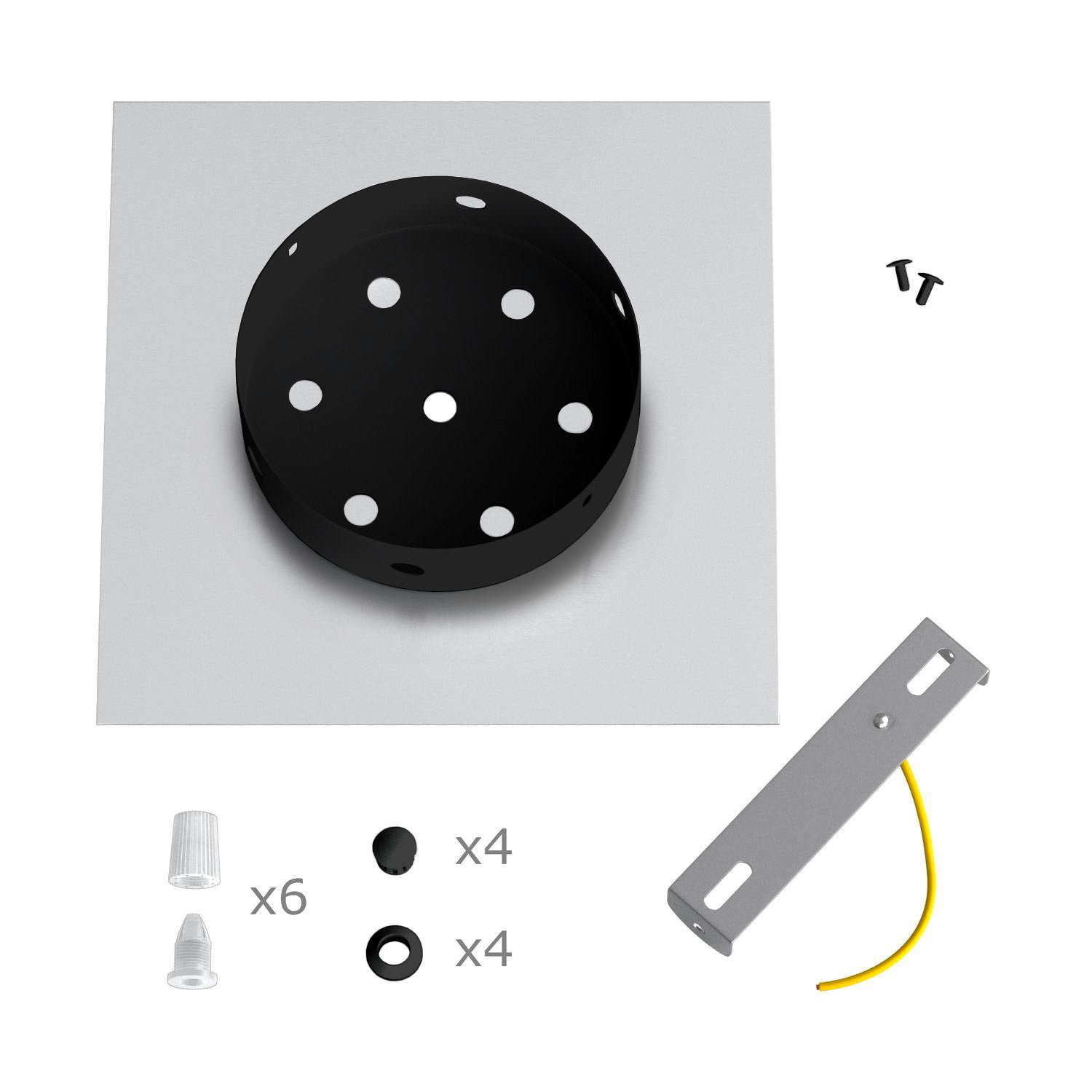 Stropná rozeta Rose-One štvorcová, 200 mm so 6 otvormi a 4 bočnými otvormi - Antracit
