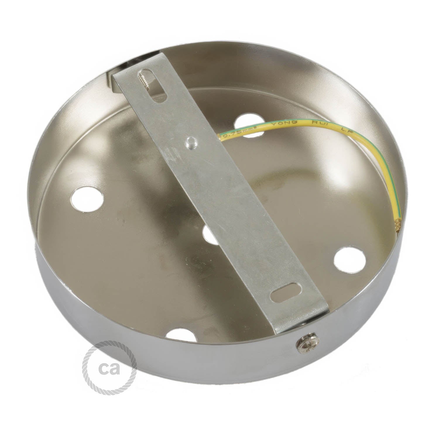 Sada stropnej rozety z kovu s 5 otvormi – chróm je ideálnou voľbou na vytvorenie lampy s 5 svetelnými bodmi zo stropu alebo zo steny. Lesklý a odrazivý chrómový povrch zosilňuje svetlo a okolie, čím sa stropná rozeta stáva dekoratívnym prvkom s moderným a sofistikovaným charakterom. Kov zaručuje pevnosť a dlhú životnosť.