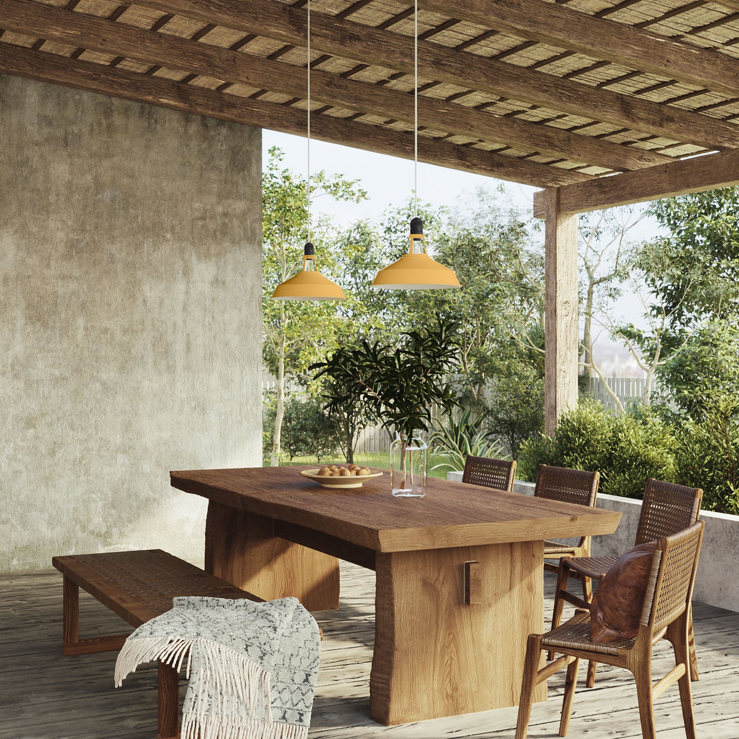 Moderný dizajn tienidla v kombinácii s intenzívnym odtieňom horčicovej ho robí ideálnym pre kuchyne s vintage atmosférou, kreatívne obývacie priestory a eklektické verandy.