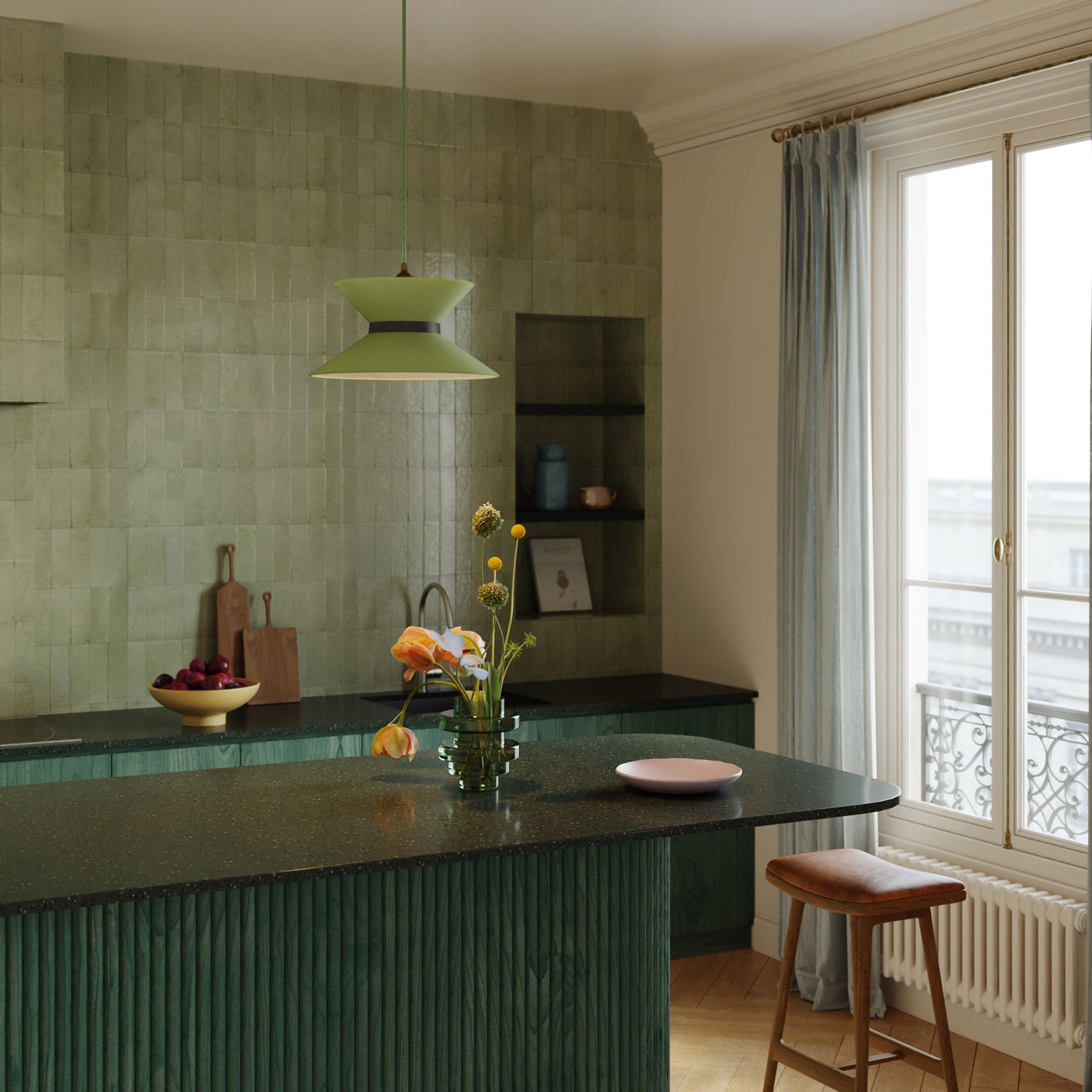 Perfektné pre moderné kuchyne, svetlé obývačky alebo kreatívne komerčné priestory, Clessidra pistáciová predstavuje rovnováhu medzi funkčnosťou a farebným dizajnom.