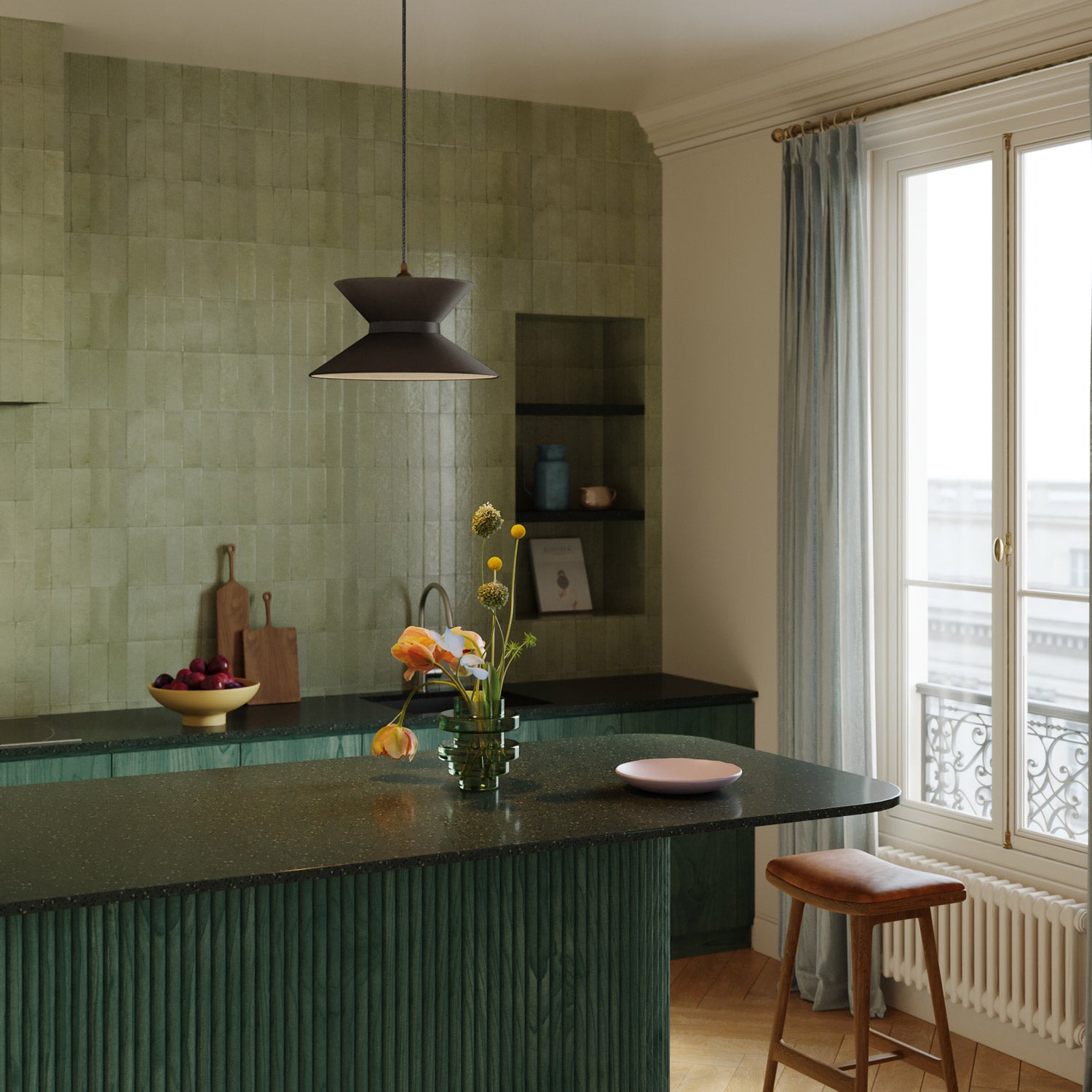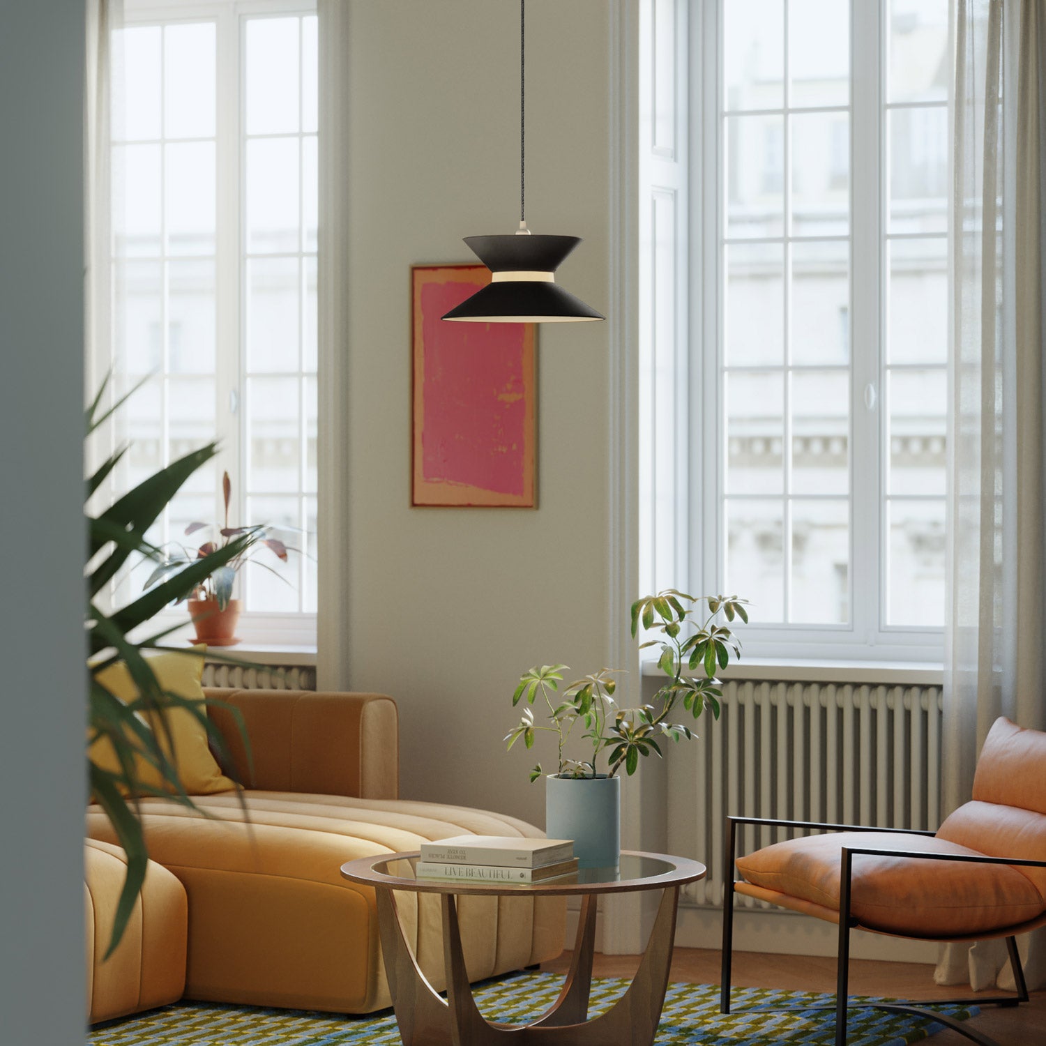 Špeciálny tvar rozptyľuje svetlo nahor aj nadol a vytvára intímnu a pohodlnú atmosféru. Antracitová povrchová úprava dodáva priestoru hĺbku a eleganciu.