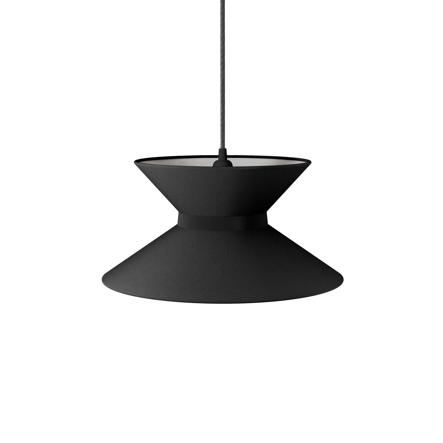 Textilné tienidlo Clessidra vo vyhotovení antracitovej látky je príkladom výrazného a elegantného dizajnu. Jeho presýpaciemu tvaru, zloženému z troch kužeľových sekcií, dodáva silu tmavá intenzívna antracitová farba, ideálna pre moderné a sofistikované priestory.