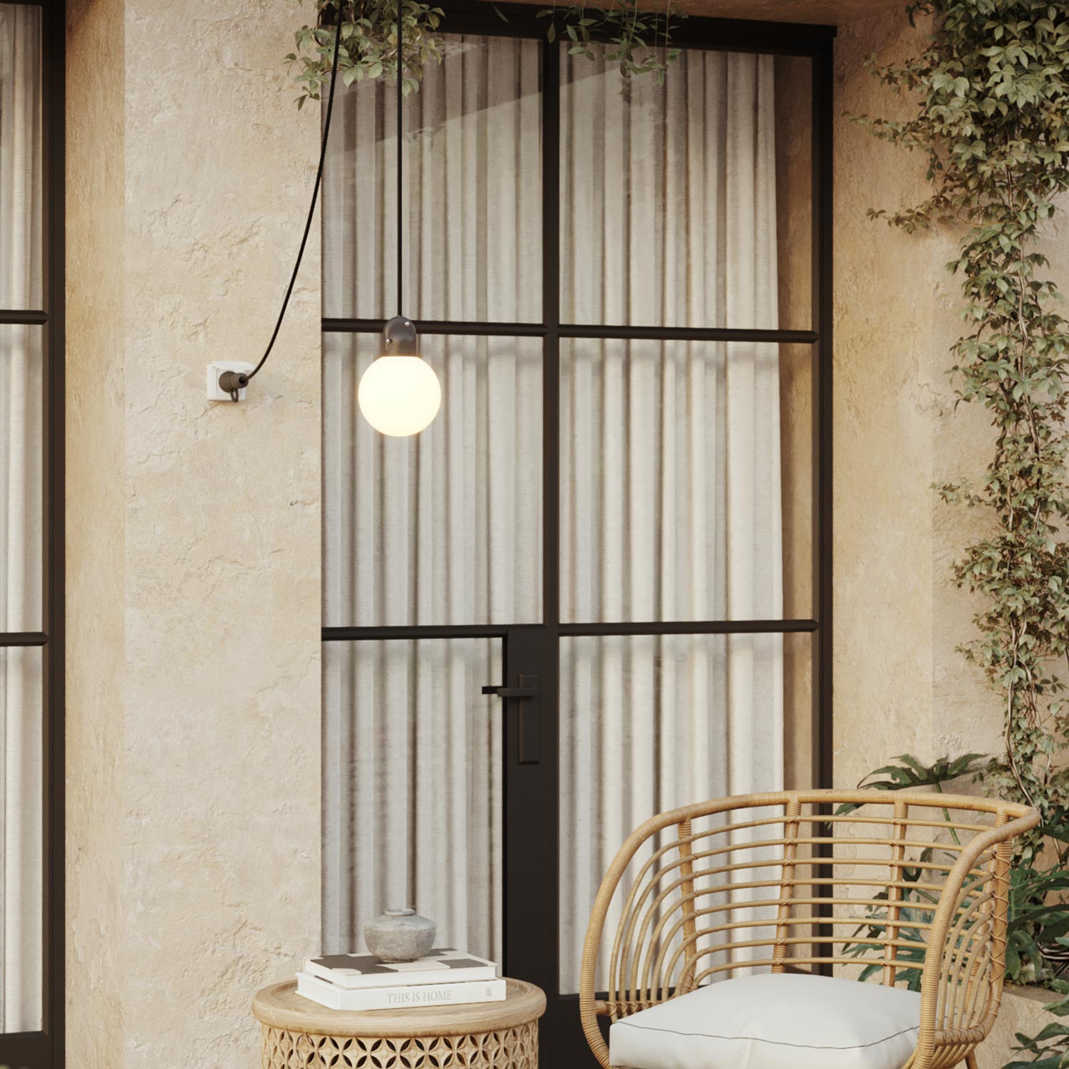 Ideálna pre tých, ktorí chcú vonkajšie osvetlenie s elegantným a výrazným charakterom, táto plug-in lampa s tienidlom Unbreak-a-Ball a čiernym káblom SM04 vyniká svojím striedmym a moderným dizajnom. Vyrobená s objímkou EIVA IP65, navrhnutou a patentovanou spoločnosťou Creative Cables, poskytuje maximálnu ochranu pred vodou a dažďom. Sférické tienidlo z nerozbitného materiálu chráni žiarovku pred náhodnými nárazmi a zabraňuje poškodeniu aj pri vetre alebo náhlom pohybe.