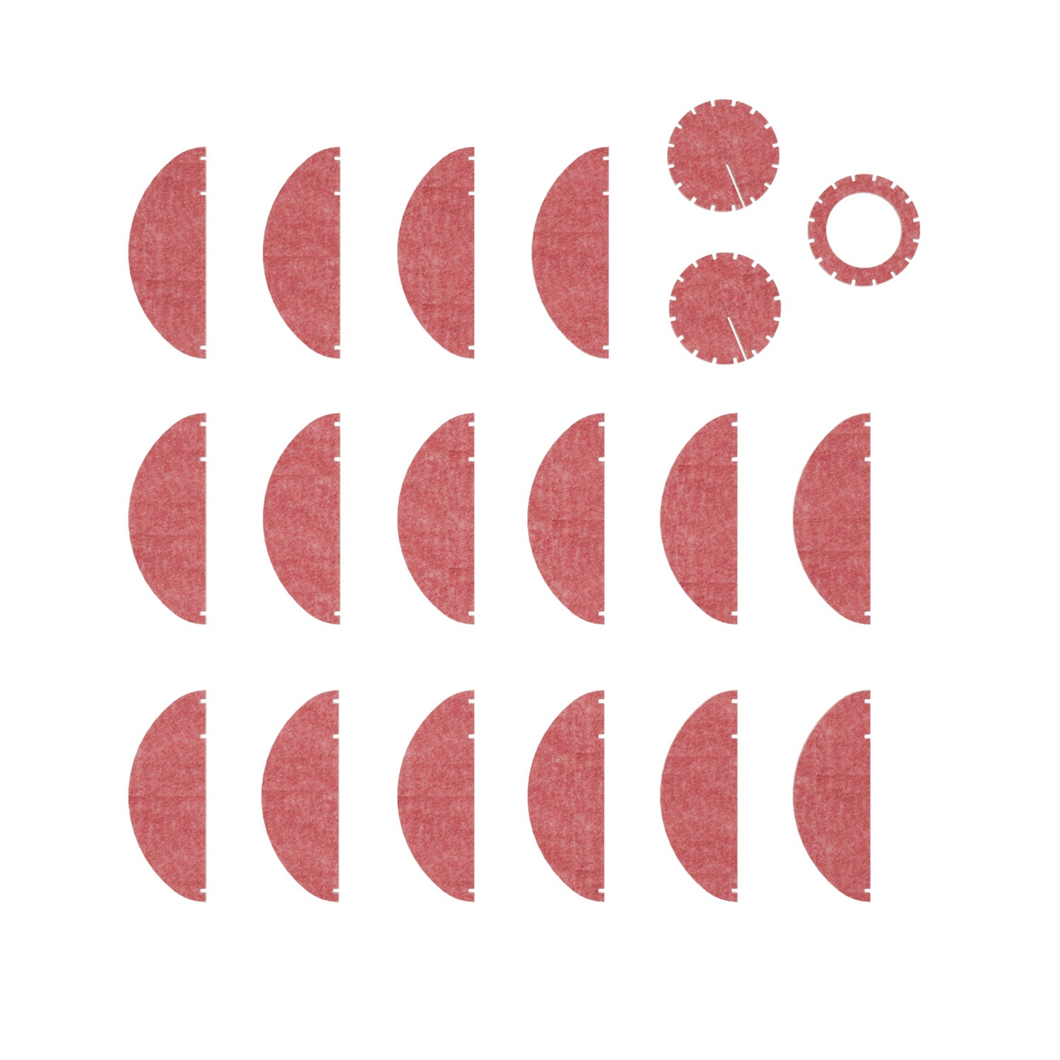 LAMPSHHADE ružový melange je lampa, ktorá dodáva priestoru jemný a originálny nádych, spájajúc estetiku a akustický komfort. Eliptické tienidlo z lamiel pohlcujúcich zvuk premieňa svetlo na mäkký a objímajúci zmyslový zážitok, ideálny na vytvorenie intímnej a relaxačnej atmosféry.